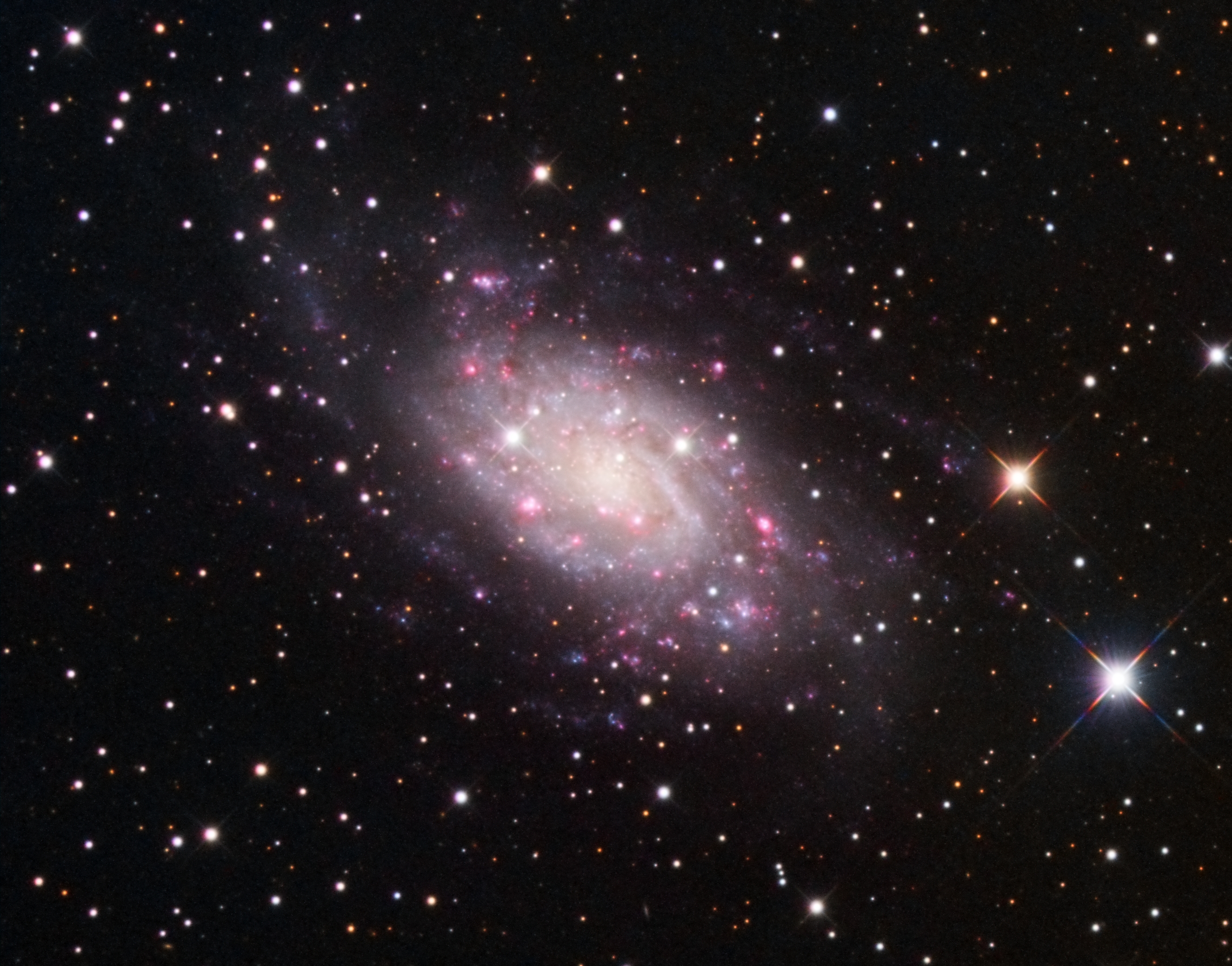 NGC 2403 ← Previous Next → NGC 2403 The Spiral Galaxy NGC 2403 in Camelopardalis December 2019 – February 2020 L:24x300s bin1x1 Ha:13x600s bin2x2 R:32x210s bin2x2 G:94x220s bin2x2 B:55x220s bin2x2 Atik 460ex RC 203mm/1625mm