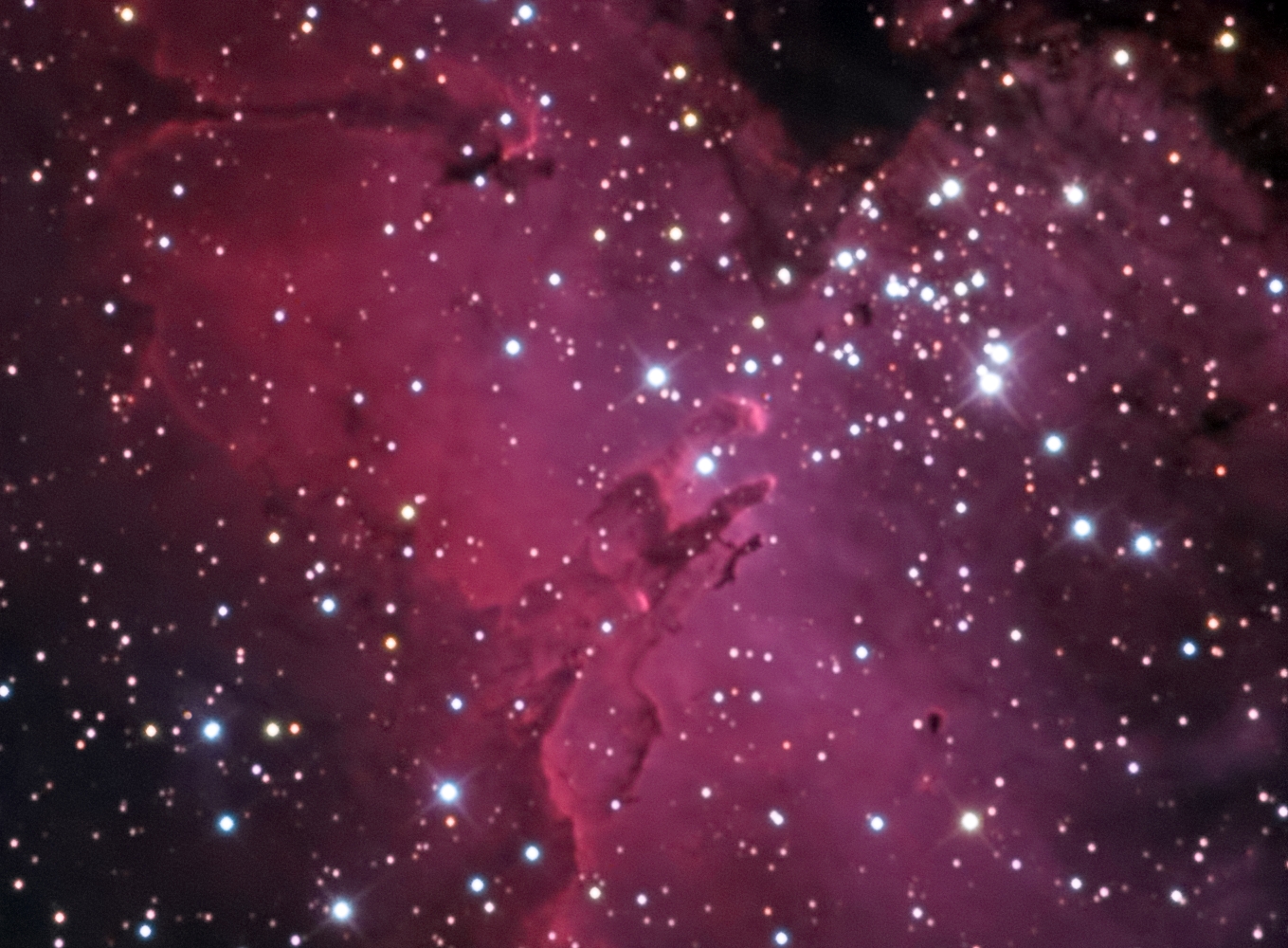 Eagle Nebula Next → Eagle Nebula Eagle Nebula 20-21 July 2014 L: 20x5min R: 10x100sec (binned 3×3) G: 10x100sec (binned 3×3) B: 10x100sec (binned 3×3) Atik 314L+ RC 203mm/1625mm