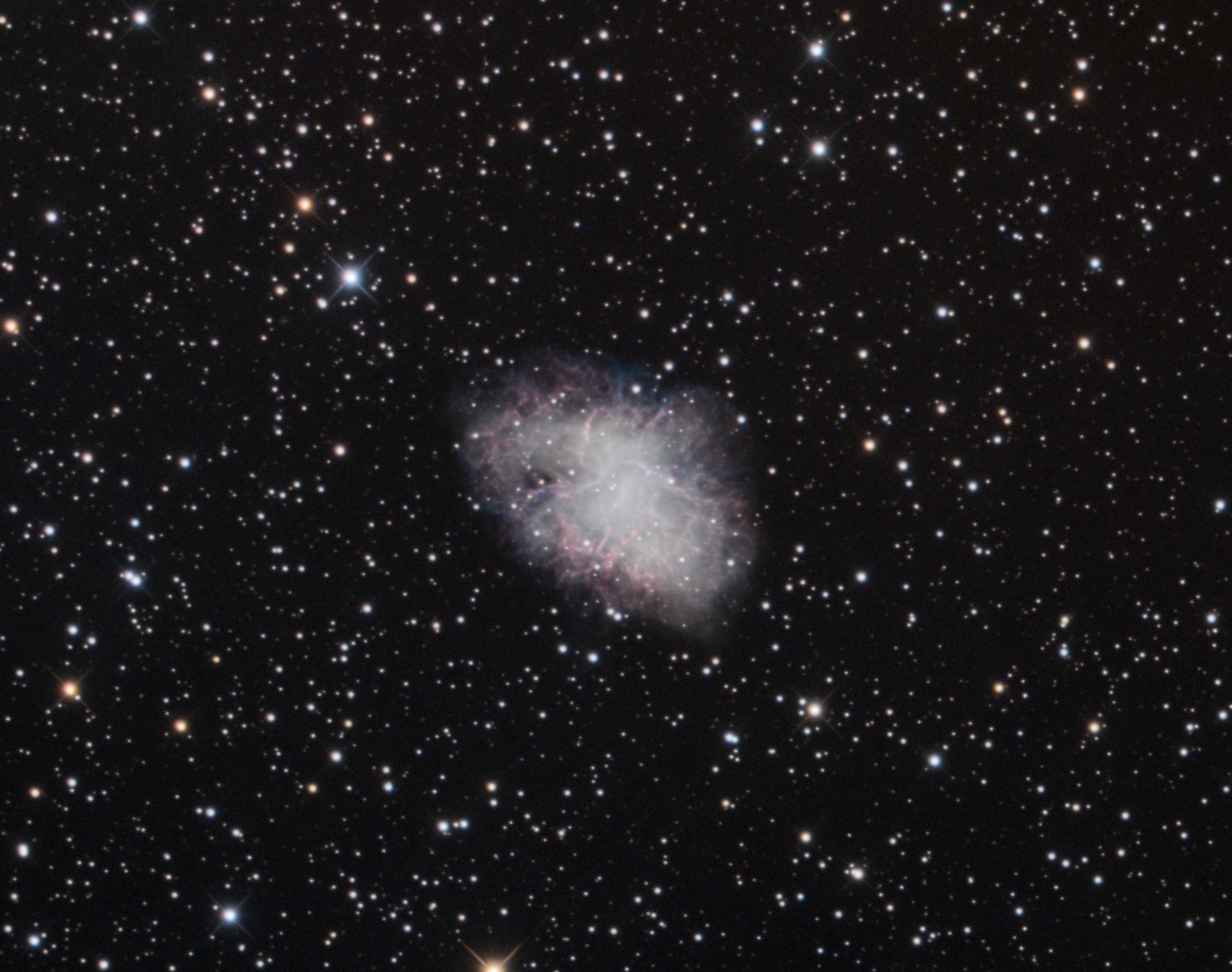 M 1 (The Crab Nebula) ← Previous Next → M 1 (The Crab Nebula) M 1 (The Crab Nebula) Supernova Remnant January-March 2019 L:26x300s bin1x1 R:30x180s bin2x2 G:11x180s bin2x2 B:19x200s bin2x2 Atik 460ex RC 203mm/1625mm